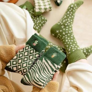 Winter Beigecottoncardigan Warm Thick Socks
