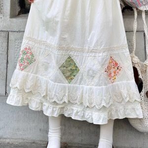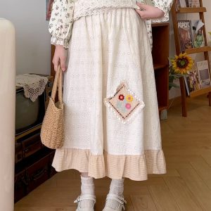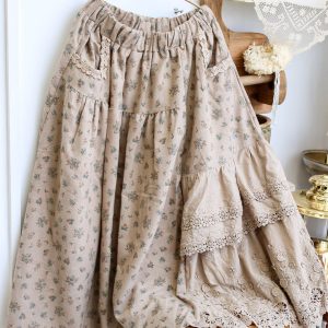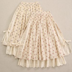 Beigecottoncardigan Vibe Floral Skirt With Pockets