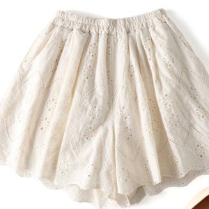 Cotton Eyelet Lace Shorts With Lining & Pockets