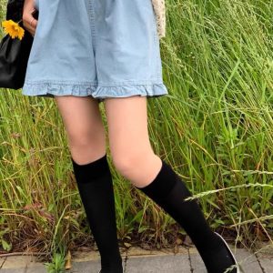Ruffled Hem Denim Shorts