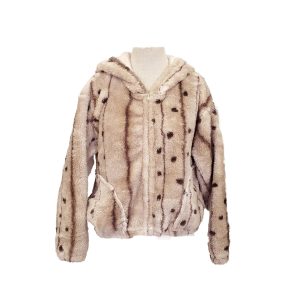 Cropped Fluffy Hoodie (Animal Print – Beige Spot & Stripe)