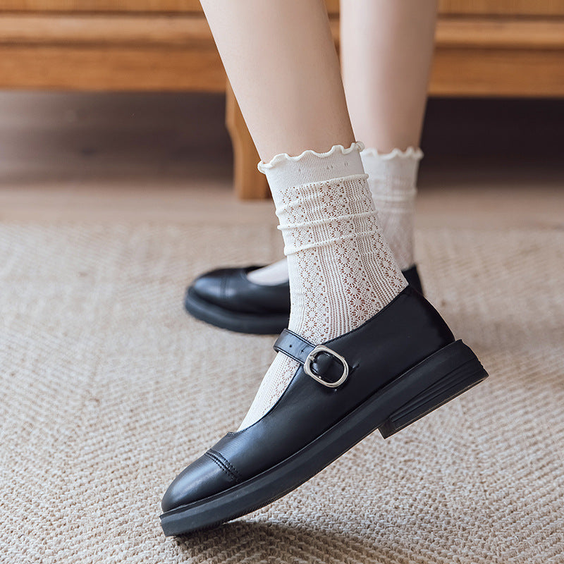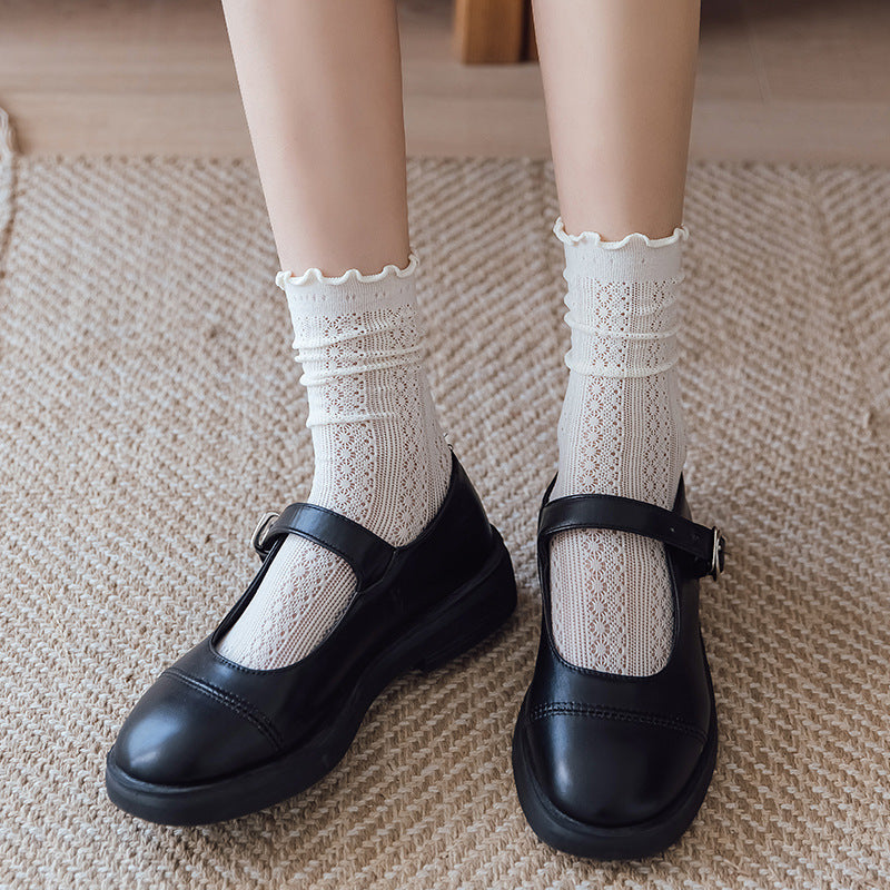 Beigecottoncardigan Cute Flounce Cotton Socks
